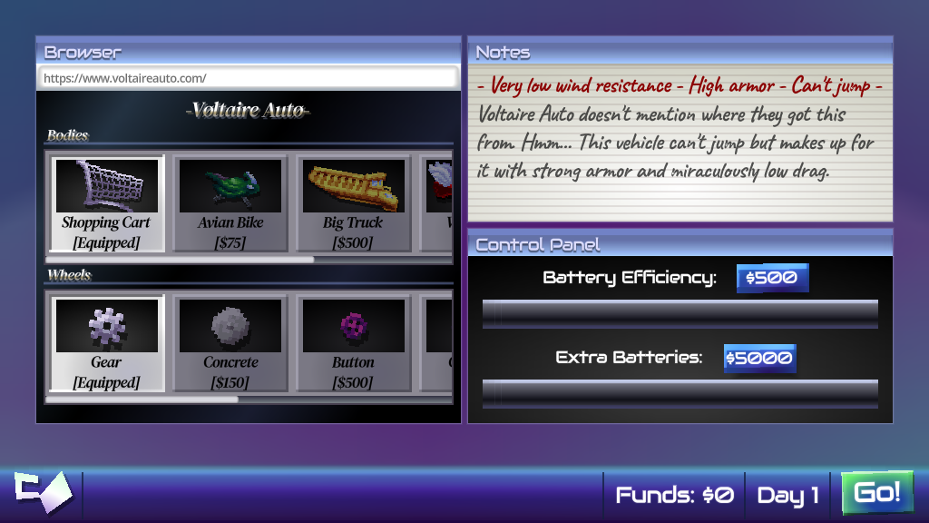 A short physics-based car game, inspired by classic "upgrade games" such as Learn to Fly and Shopping Cart Hero!